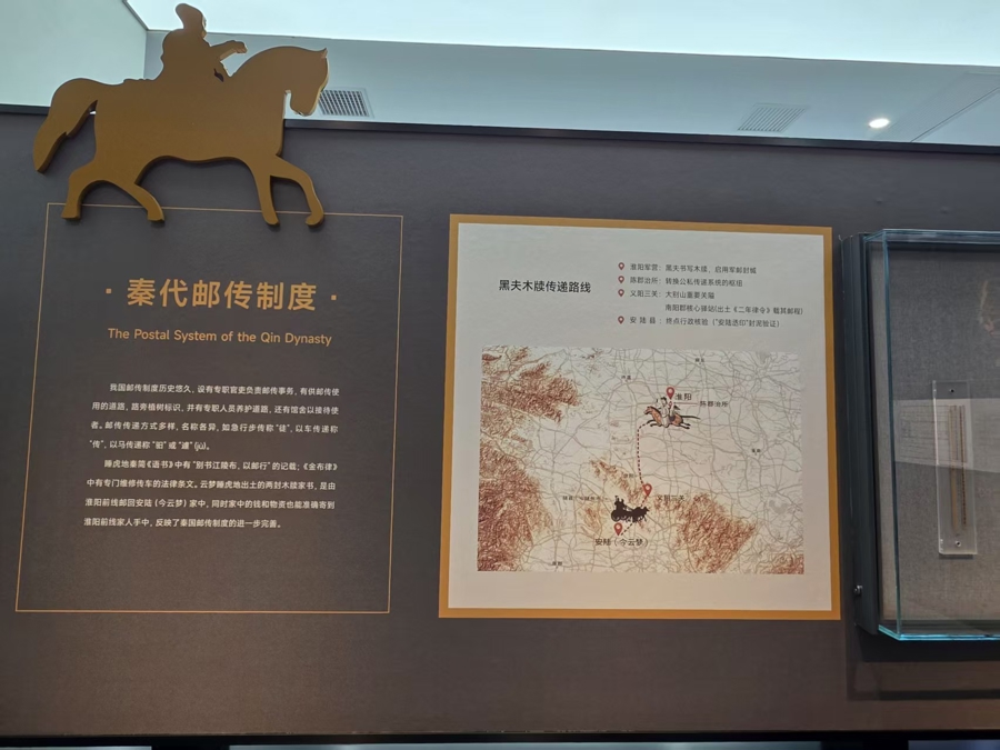 图为云梦县博物馆内展示的“黑夫木牍传递路线图”。/袁婧摄