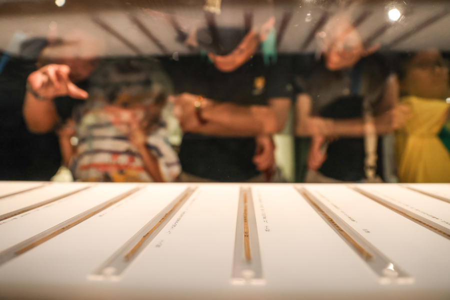 图为湖北省博物馆内,游客正在参观秦简。/袁婧摄