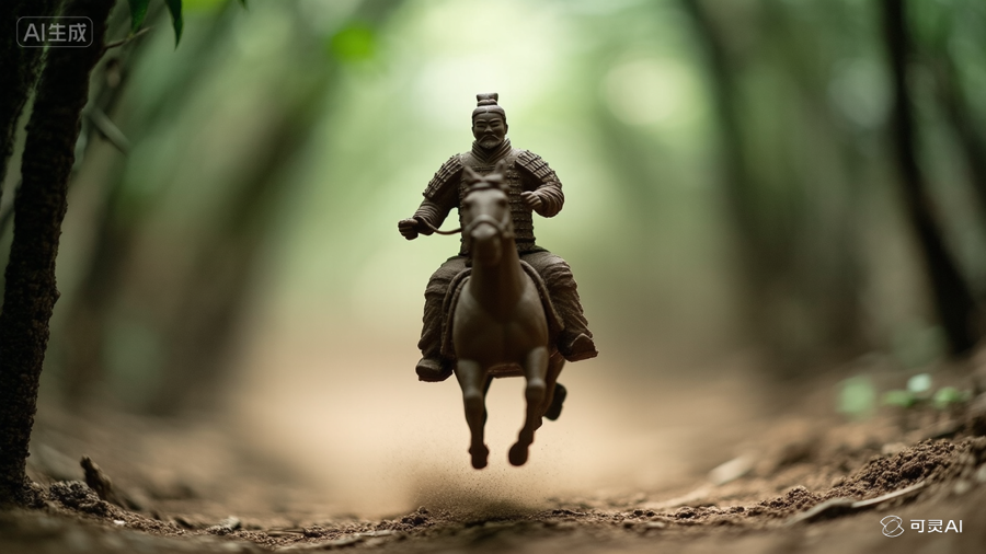 图片由AI生成,提示词为“秦军士兵飞驰在土路上”。